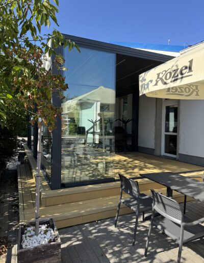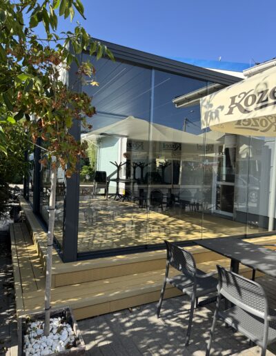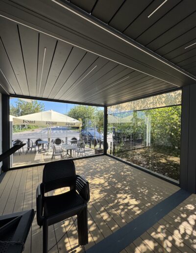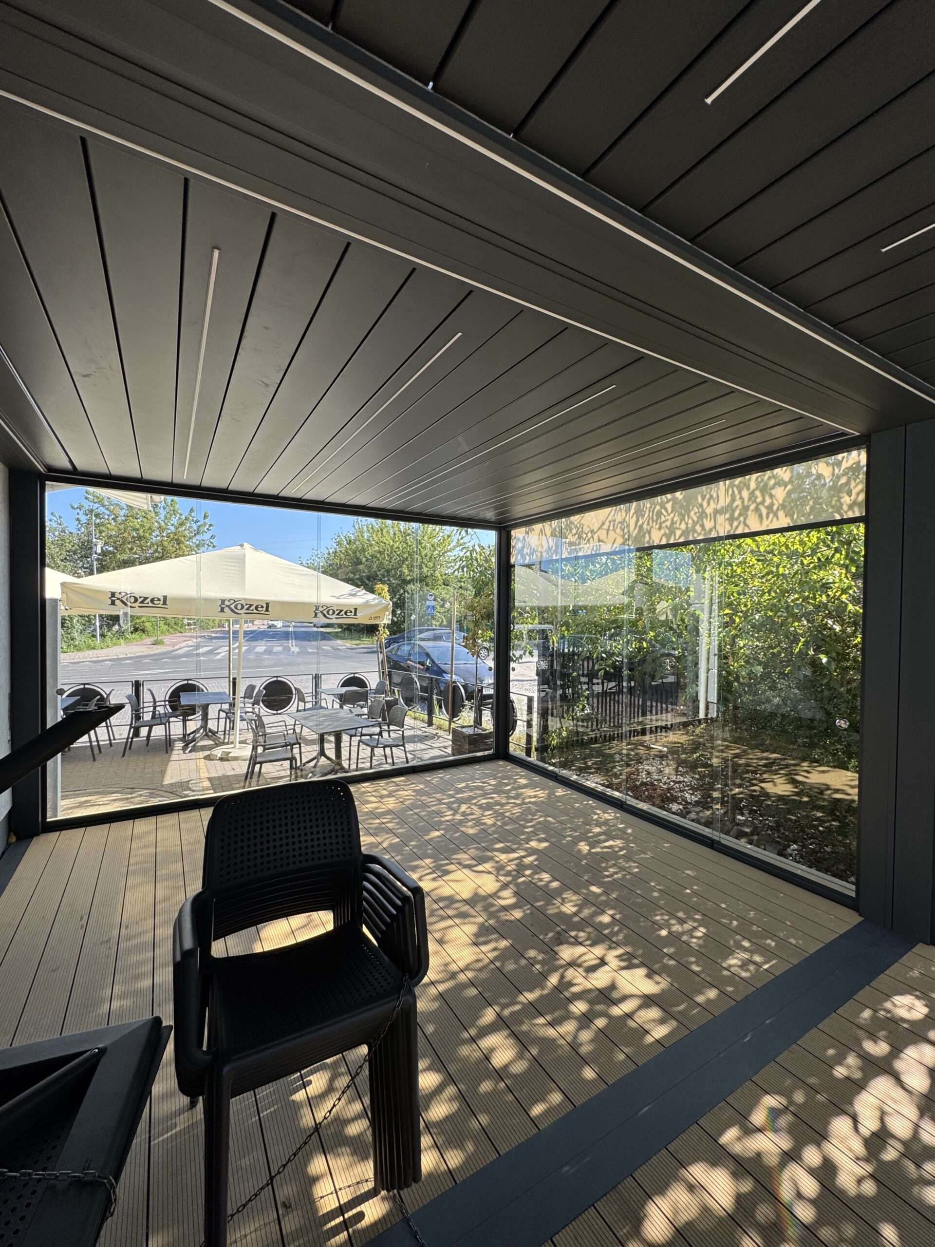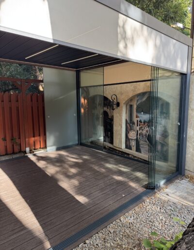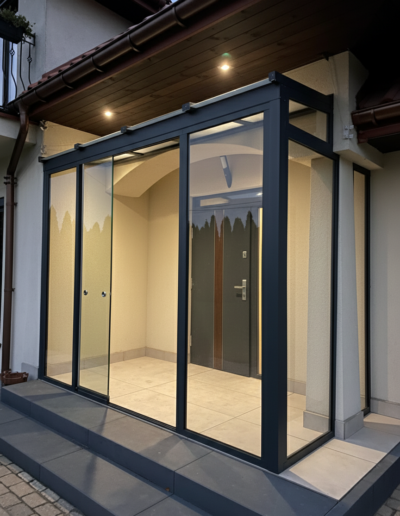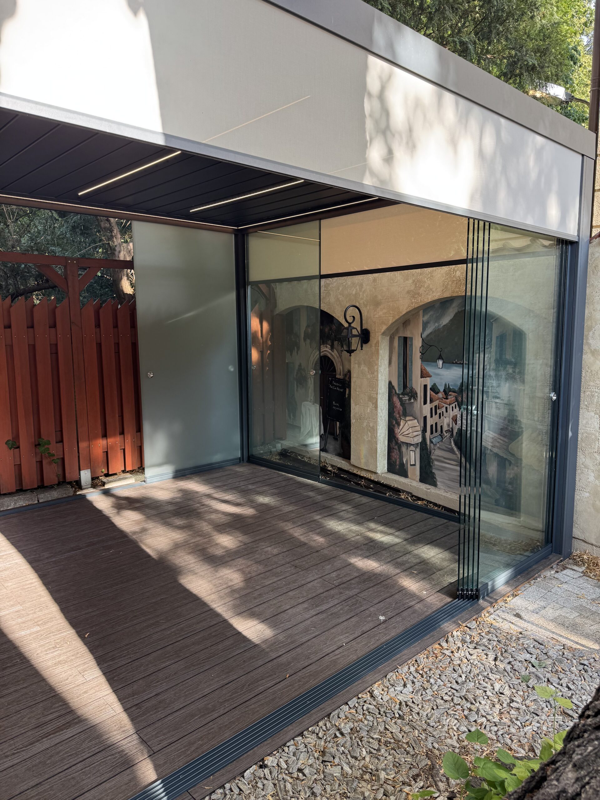 Pergola, Zadaszenie tarasu, Zabudowa tarasu, Zabudowa balkonu, Oranżeria letnia, Ogród zimowy, Ściany ze szkła, Przesuwki, Sciany ruchome oraz stałe, Przeszklenie. Aluminiowo-szklane konstrukcje na wymiar.
